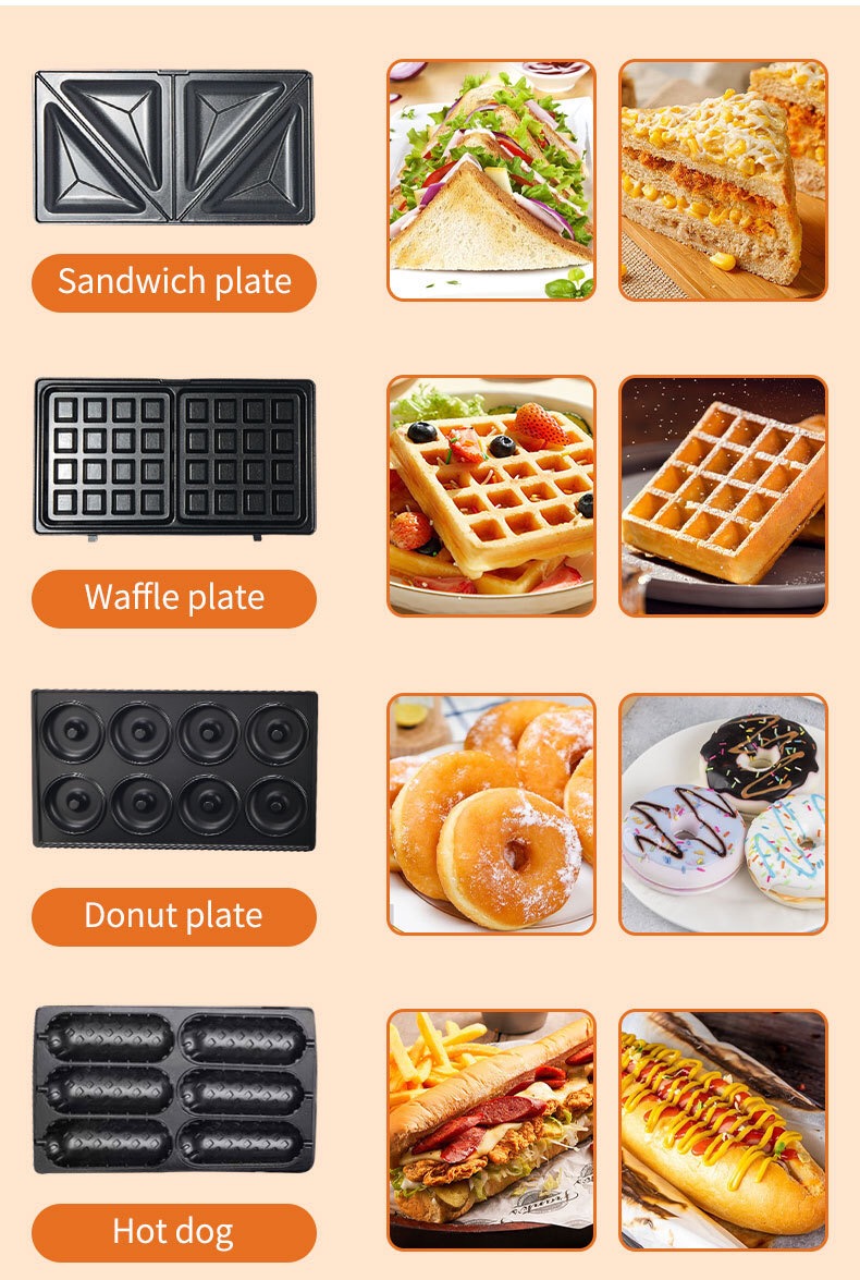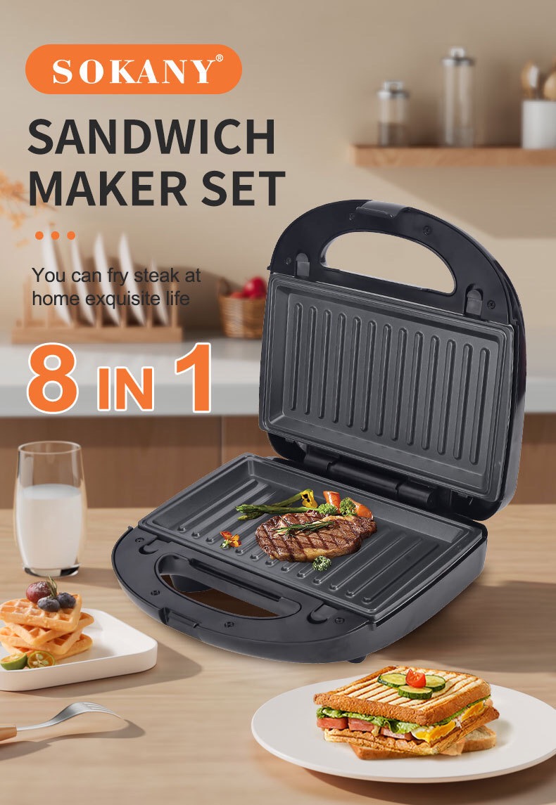 【WANNASHOP】 SOKANYB140 Sandwich Maker 8-in-1 Removable Plate Cake Nut Donut Waffle Maker