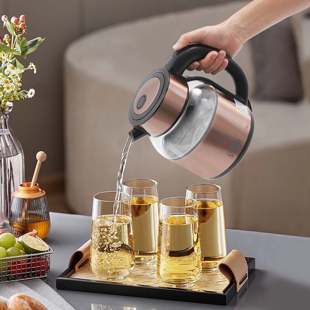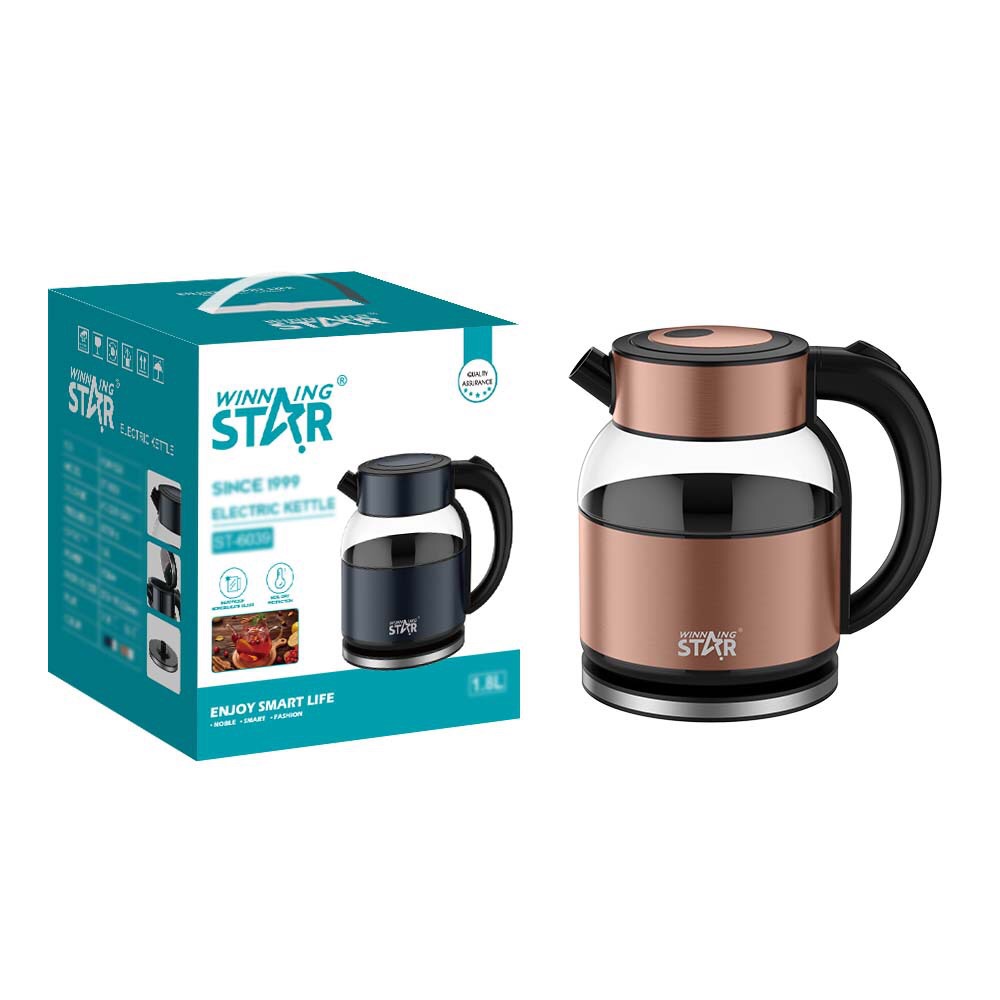 Electric kettle, ST-6039, voltage: AC220-240V, power: 1500W, capacity: 1.8L, material: high borosilicate glass, anti-dry heating, size: 225*155*210mm